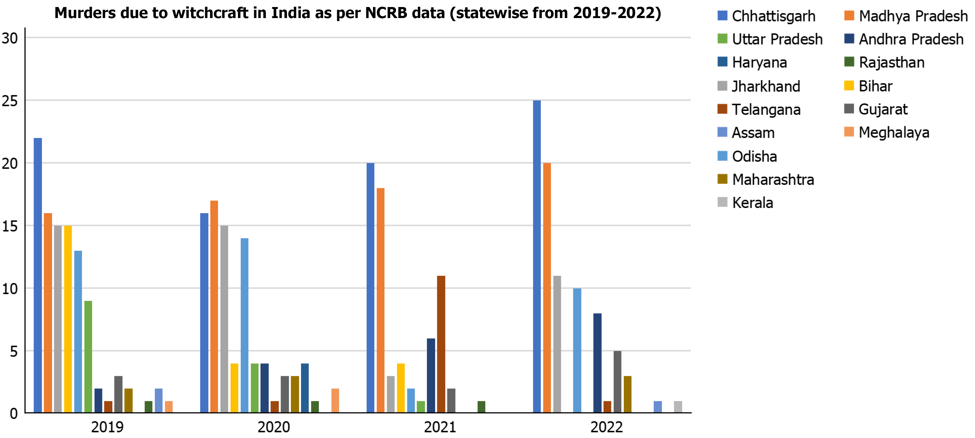 Figure 1 National Crime Records Bureau data on murders due to witchcraft during 2019-2022.