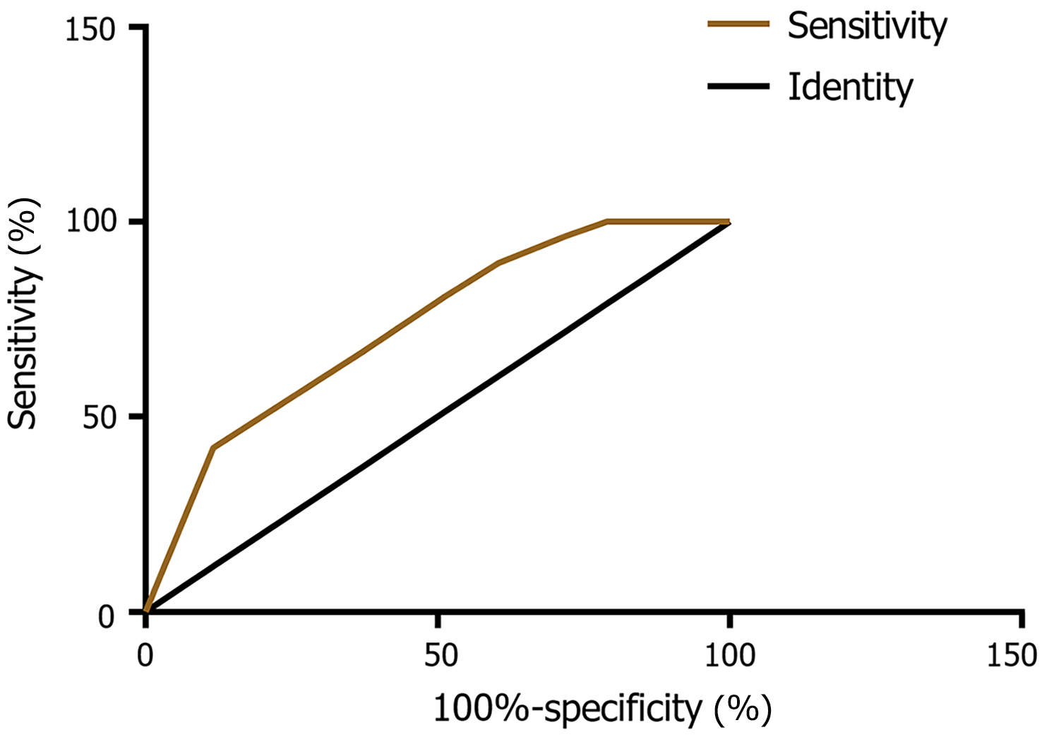 The predictive performance of the logistic regression model was evaluated using receiver operating characteristic (ROC) curve analysis. The model yielded an area under the curve (AUC) of 0.732 (95%CI: 0.633-0.831), with an optimal cutoff of 0.732, a specificity of 88.37%, and a sensitivity of 42.11% (Figure 1).
