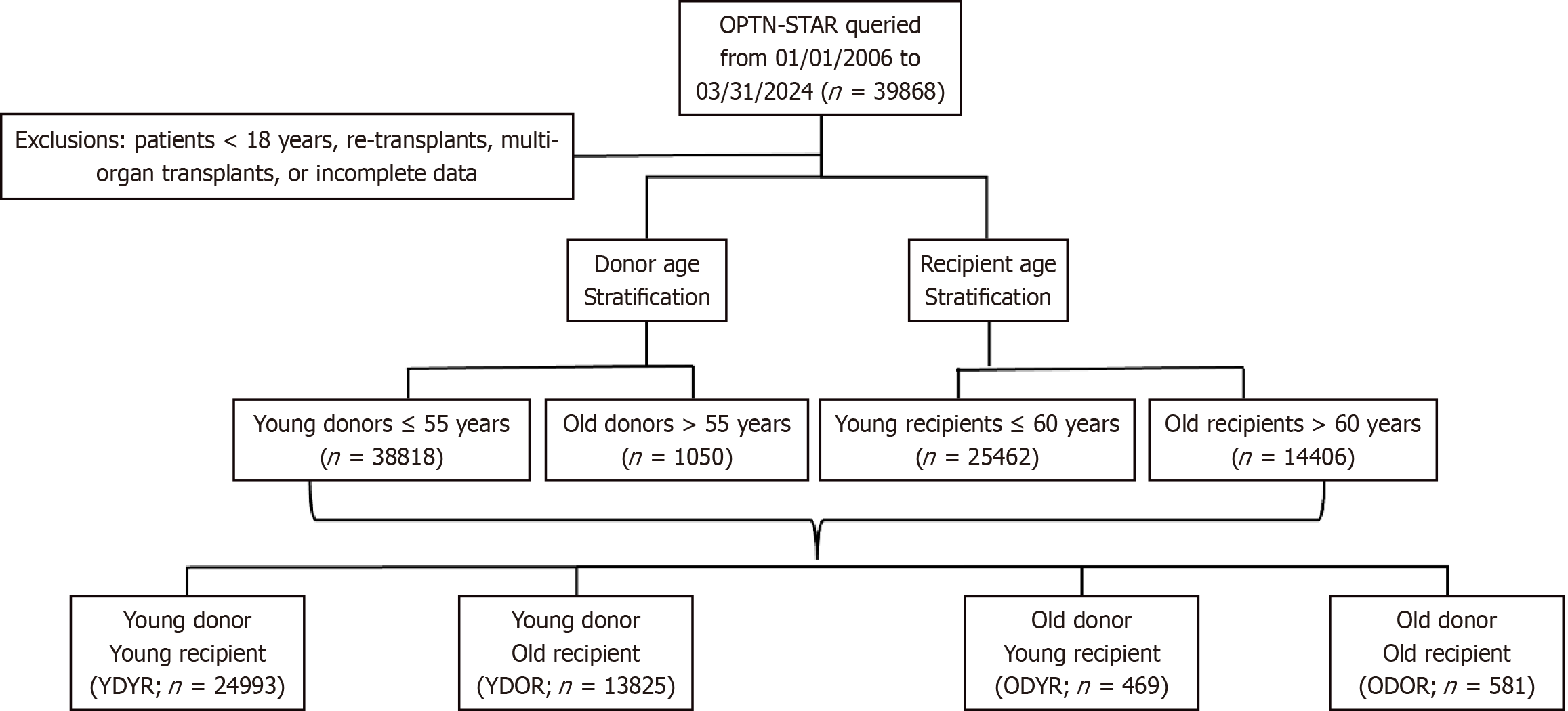 ODOR: Old donor/old recipient; ODYR: Old donor/young recipient; YDYR: Young donor/young recipient; YDOR: Young donor/old recipient; OPTN-STAR: Organ Procurement and Transplant Network’s Standard Transplant Analysis and Research.