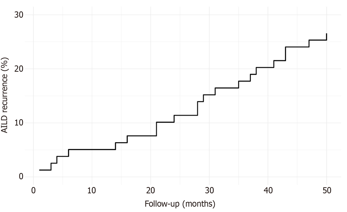 Figure 2 Cumulative incidence of autoimmune liver disease recurrence following liver transplantation.