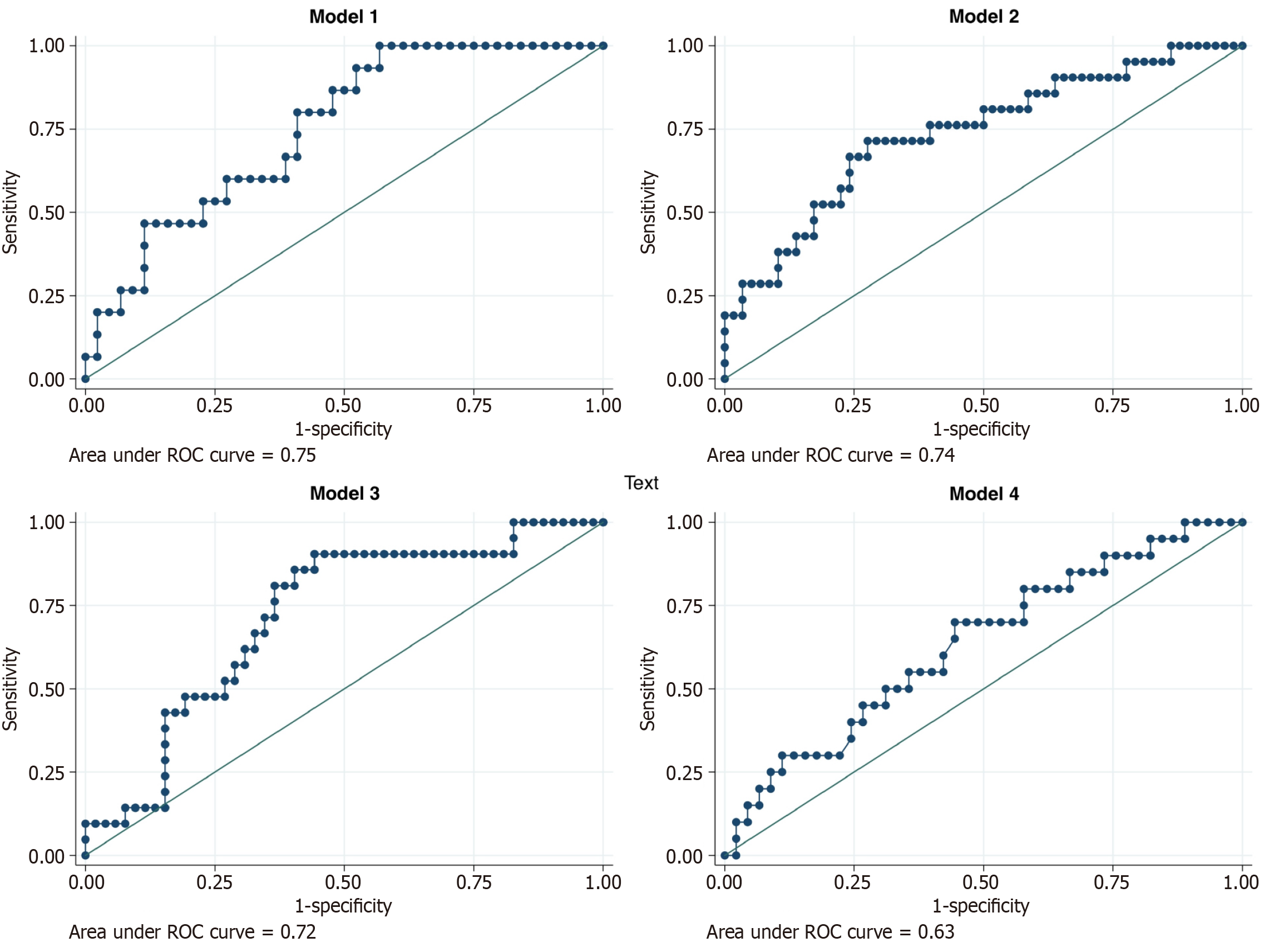 Figure 3 Area under the receiver operating characteristic curve curves of exploratory models predicting autoimmune liver disease recurrence.