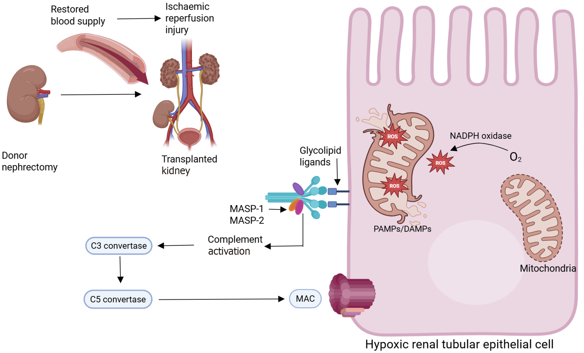Figure 3 The role of complement in the pathogenesis of ischemic reperfusion injury in renal transplantation.
