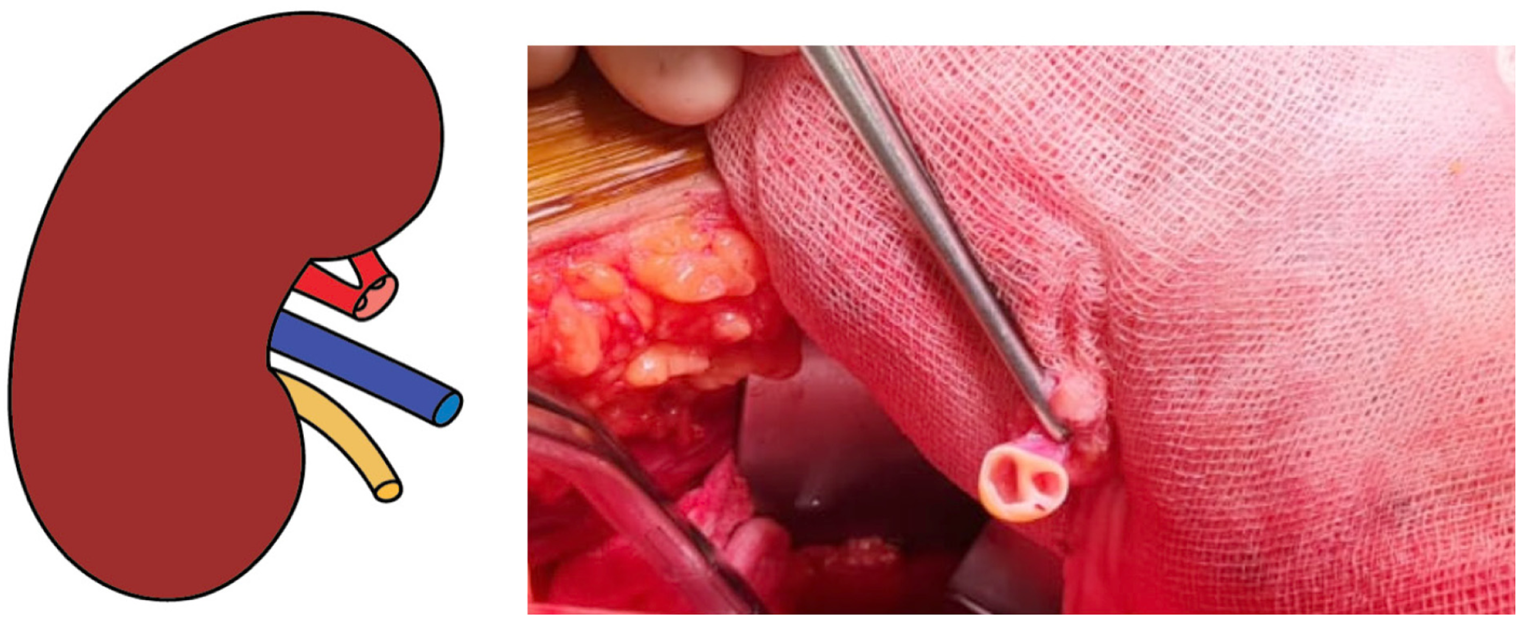 The transplant team, including nephrologists, urologists, and vascular surgeons, reviewed the case. A consensus was made to proceed with transplant. The short length of the donor renal artery was identified on preoperative imaging and discussed during the multidisciplinary team meeting. The team agreed that the vascular anatomy was suitable for transplantation, and potential reconstruction strategies were considered to address any intra-operative challenges.