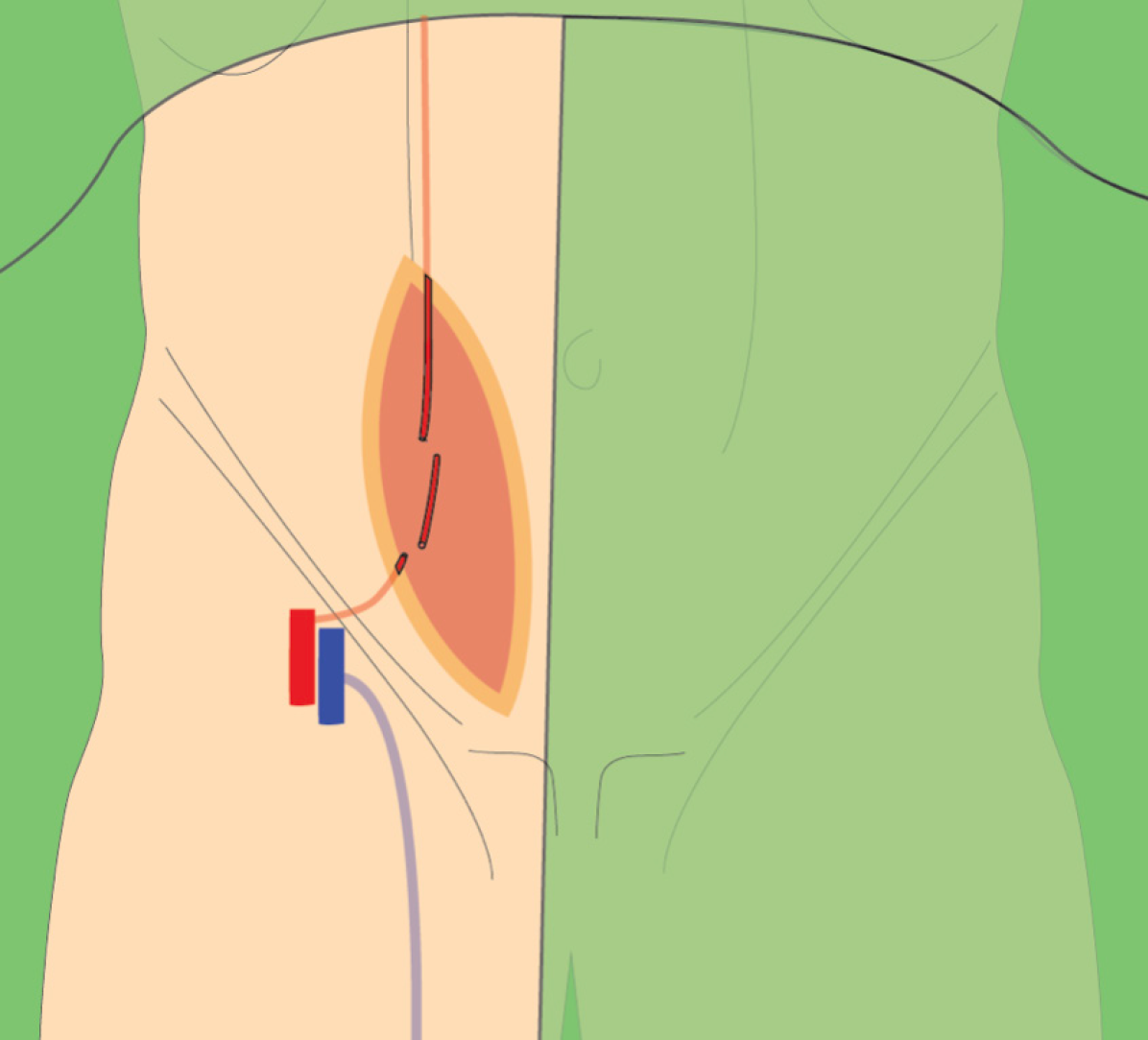 The renal transplant was carried out using a right para-rectal approach. A vertical incision was made along the medial border of the rectus abdominis muscle, providing adequate exposure of the external iliac vessels and urinary bladder. This access facilitated the vascular and ureteral anastomoses.