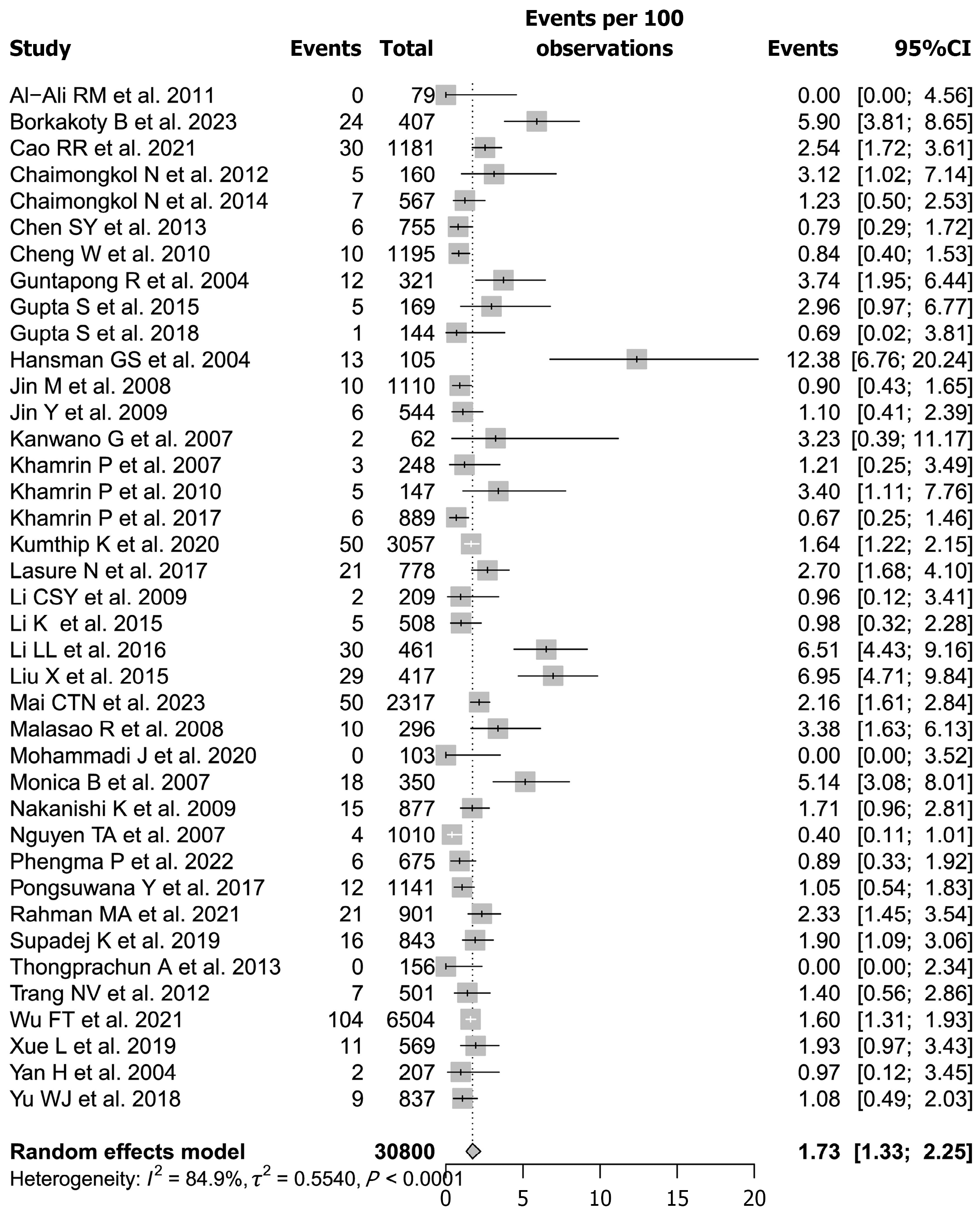 Figure 2 Forest plot of the prevalence of sapovirus in hospitalized pediatric patients in the Asian region.
