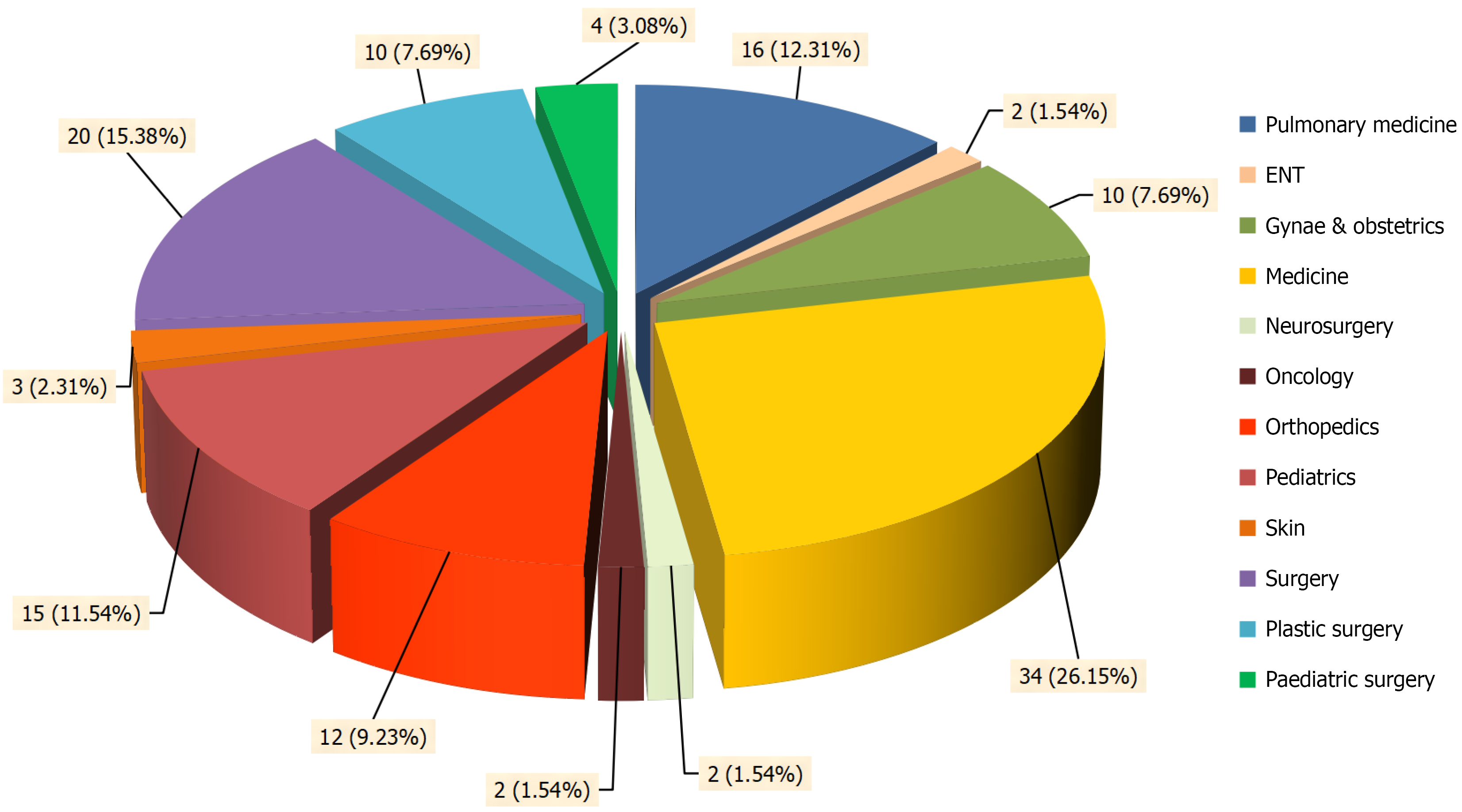 Figure 2 Department wise distribution distribution of patients with Klebsiella isolates.