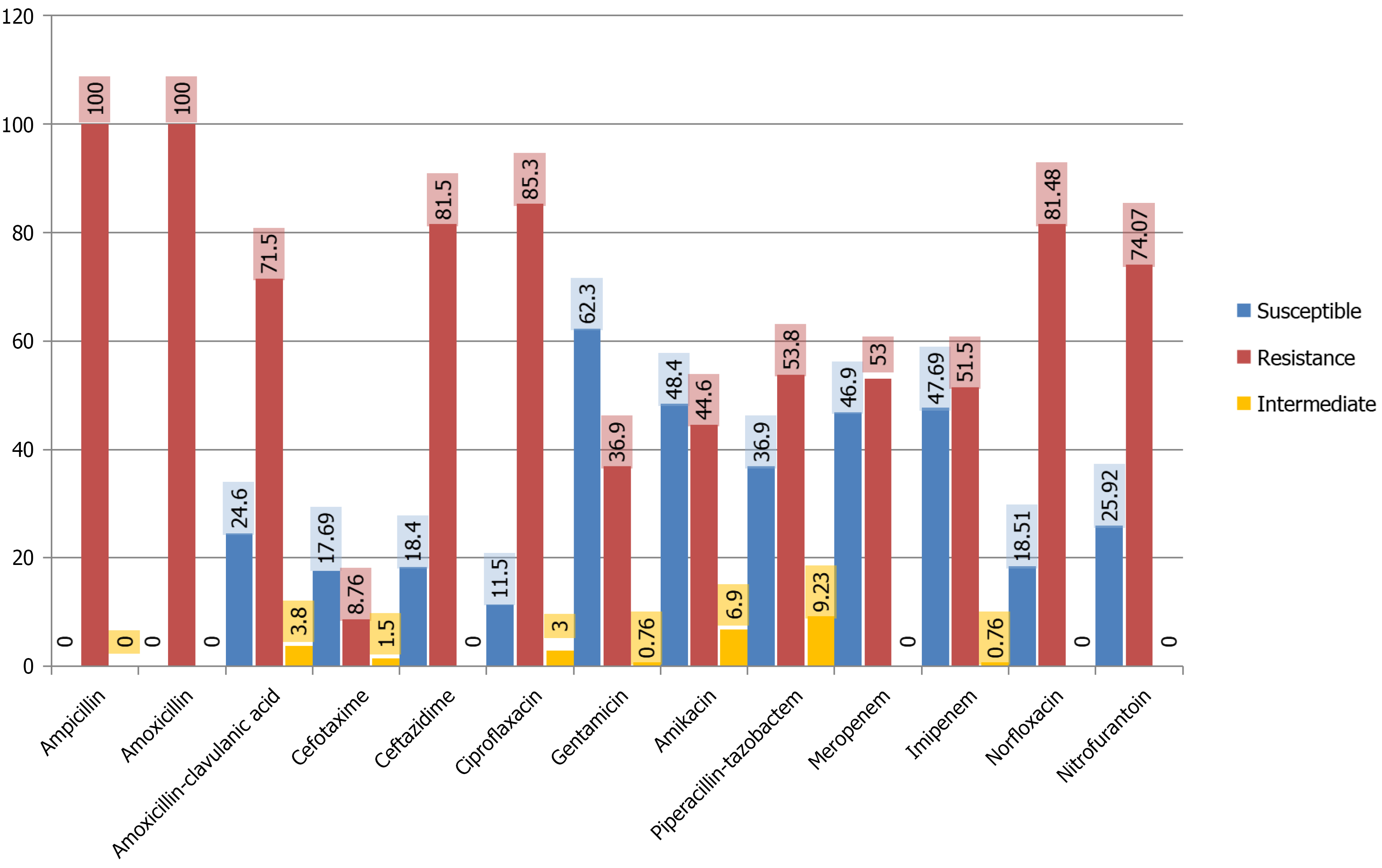 Figure 3 Antimicrobial susceptibility pattern of Klebsiella isolates (n = 130).