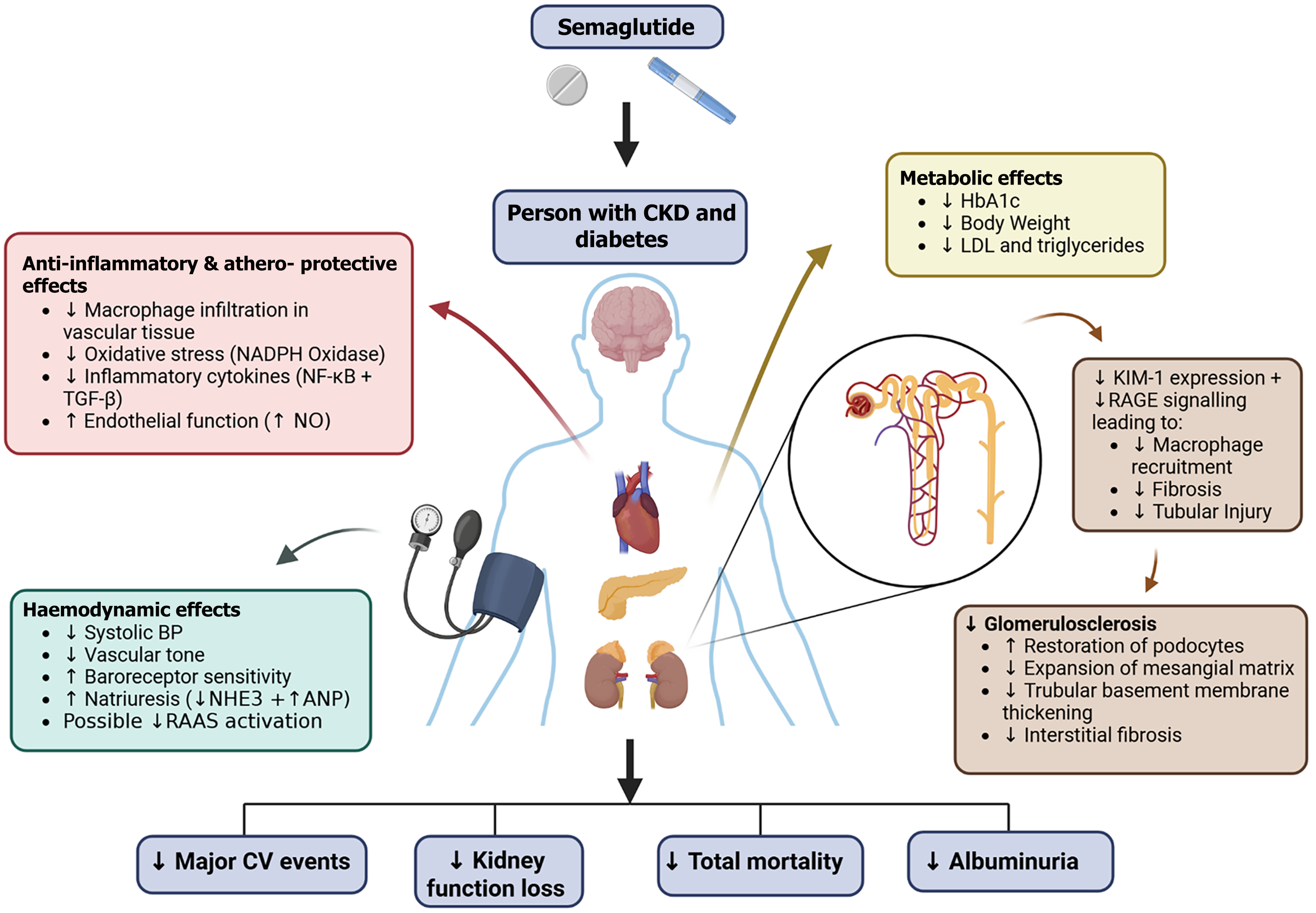 Figure 2 Potential kidney-cardiovascular and metabolic effects of semaglutide in people with chronic kidney disease.