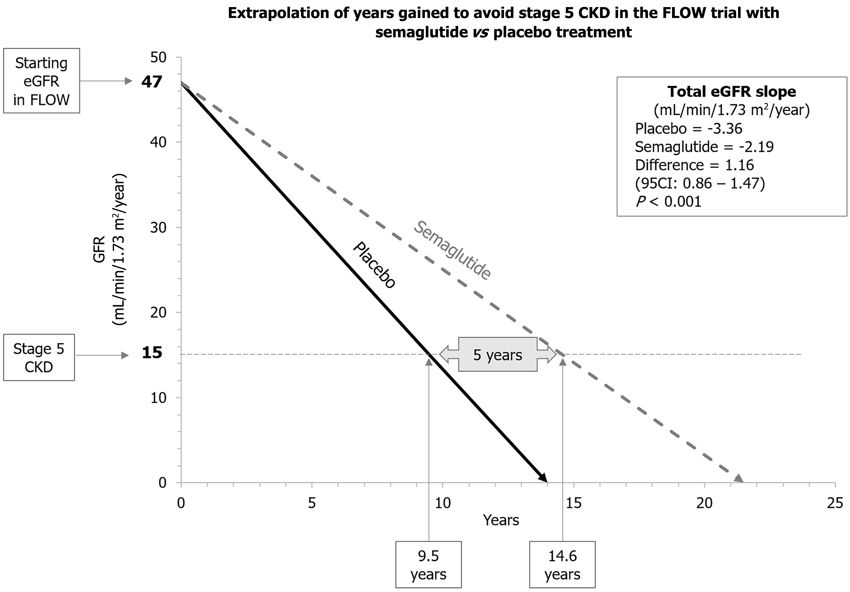 eGFR: Estimated glomerular filtration rate; CKD: Chronic kidney disease; FLOW: Evaluate Renal Function with Semaglutide Once Weekly.