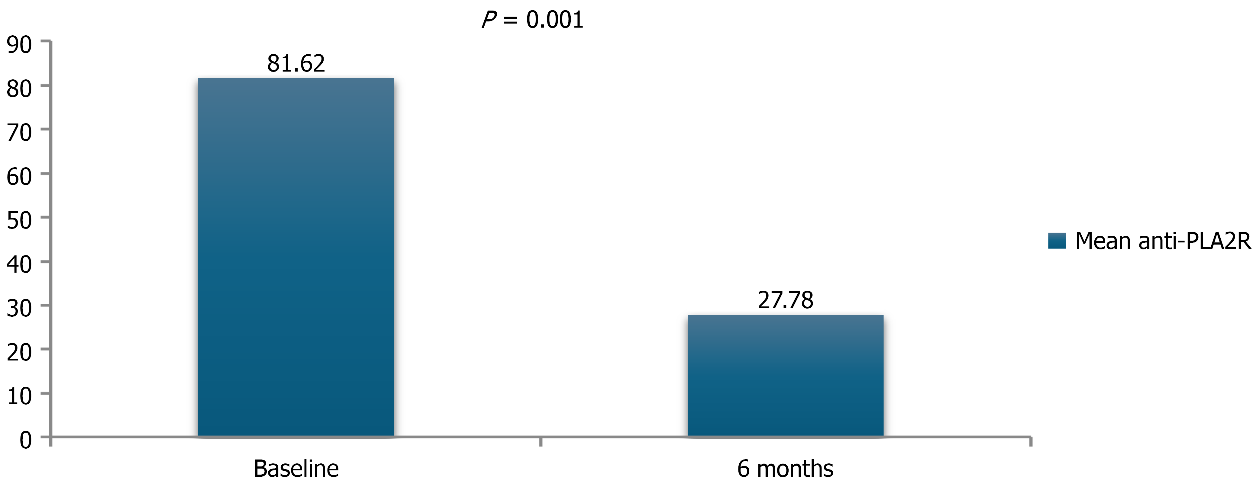 Figure 1 At 6 months serum anti-phospholipase A2 receptor (RU/mL) levels declined significantly with immunosuppression (P = 0.