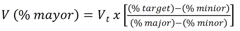 V(% major): Volume to be used of the most concentrated solution (17.7%).