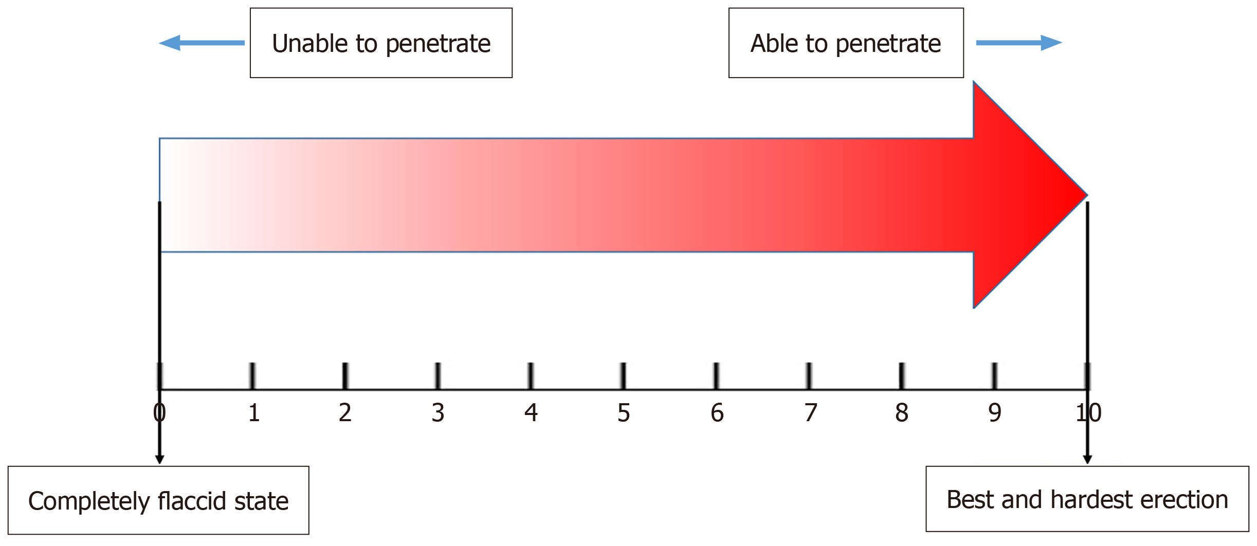 Figure 5 Self-Reported Erection Score -scoring of erection on a 0 to 10 scale and its relation to the ability to penetrate.