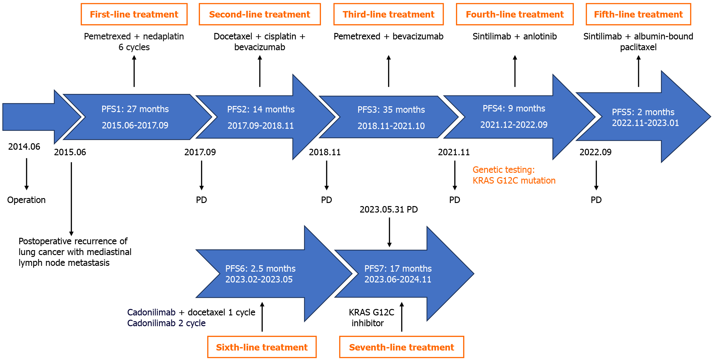 Figure 2 Treatment course of the patient with lung adenocarcinoma.