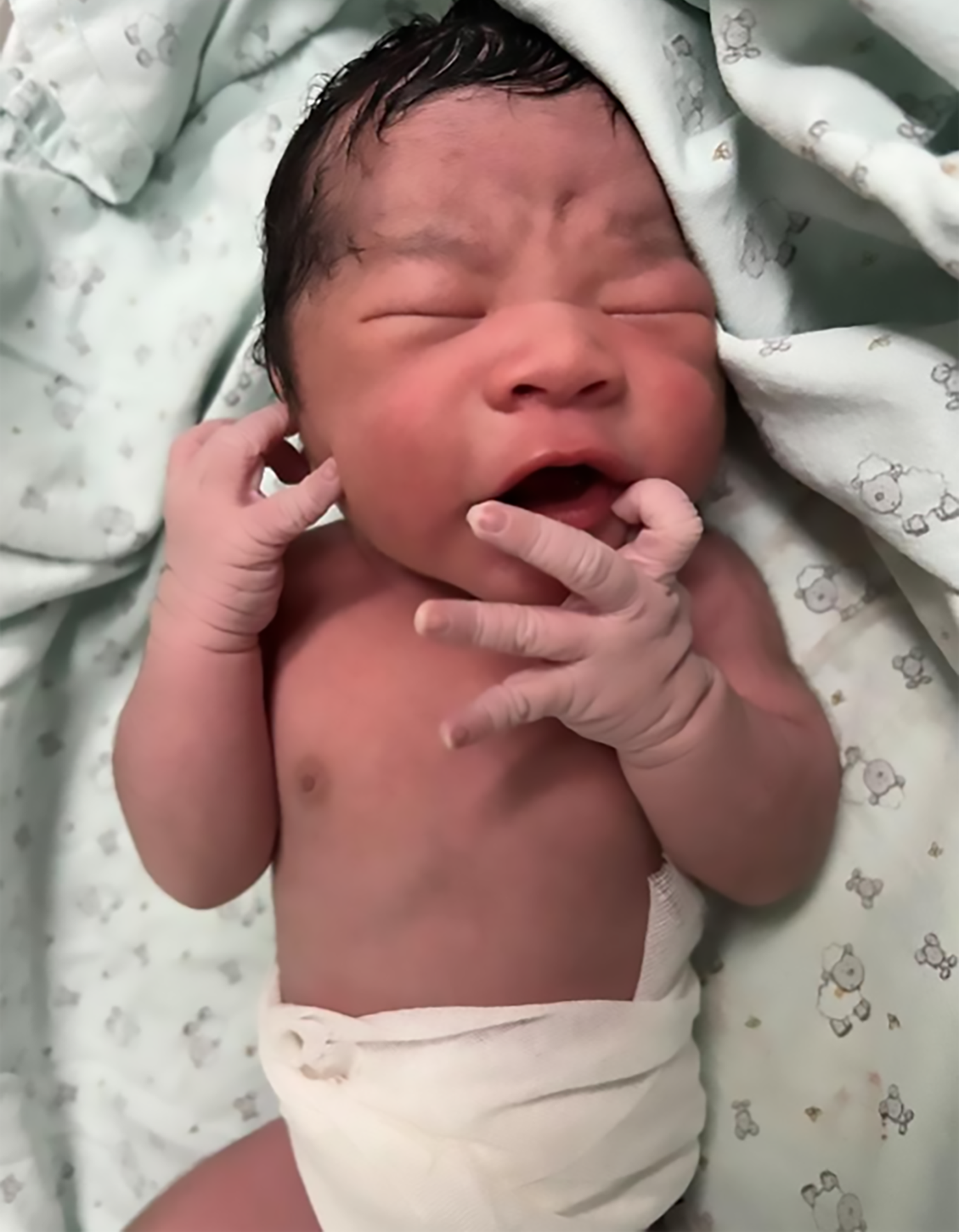 Figure 3 No dyschromatosis universalis hereditaria phenotype was observed in the baby.