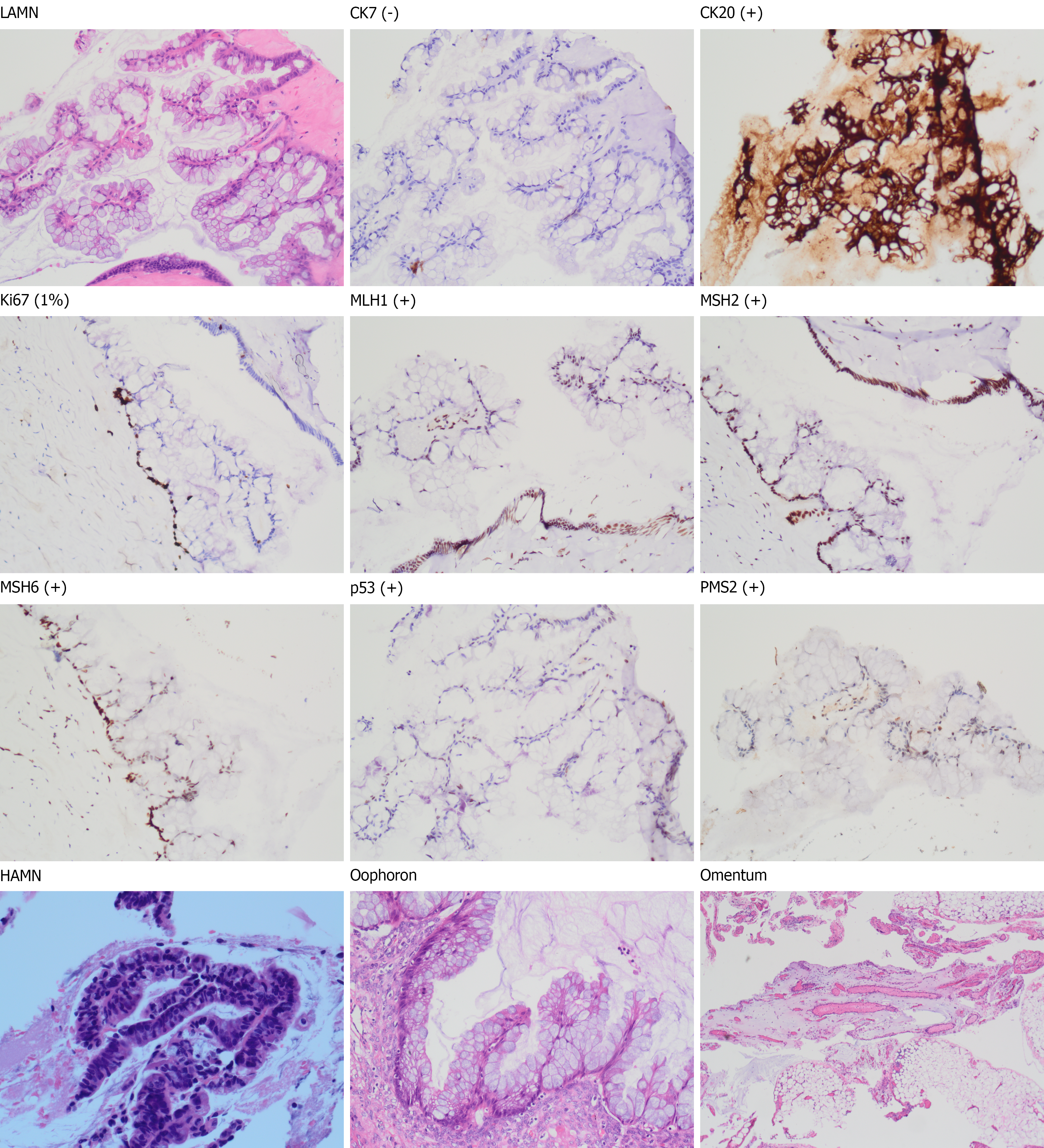 LAMN: Low-grade appendiceal mucinous neoplasm; CK: Cytokeratin; MLH: MutL homolog; MSH: MutS homolog; PMS: Postmeiotic segregation increased; HAMN: High-grade appendiceal mucinous neoplasm.