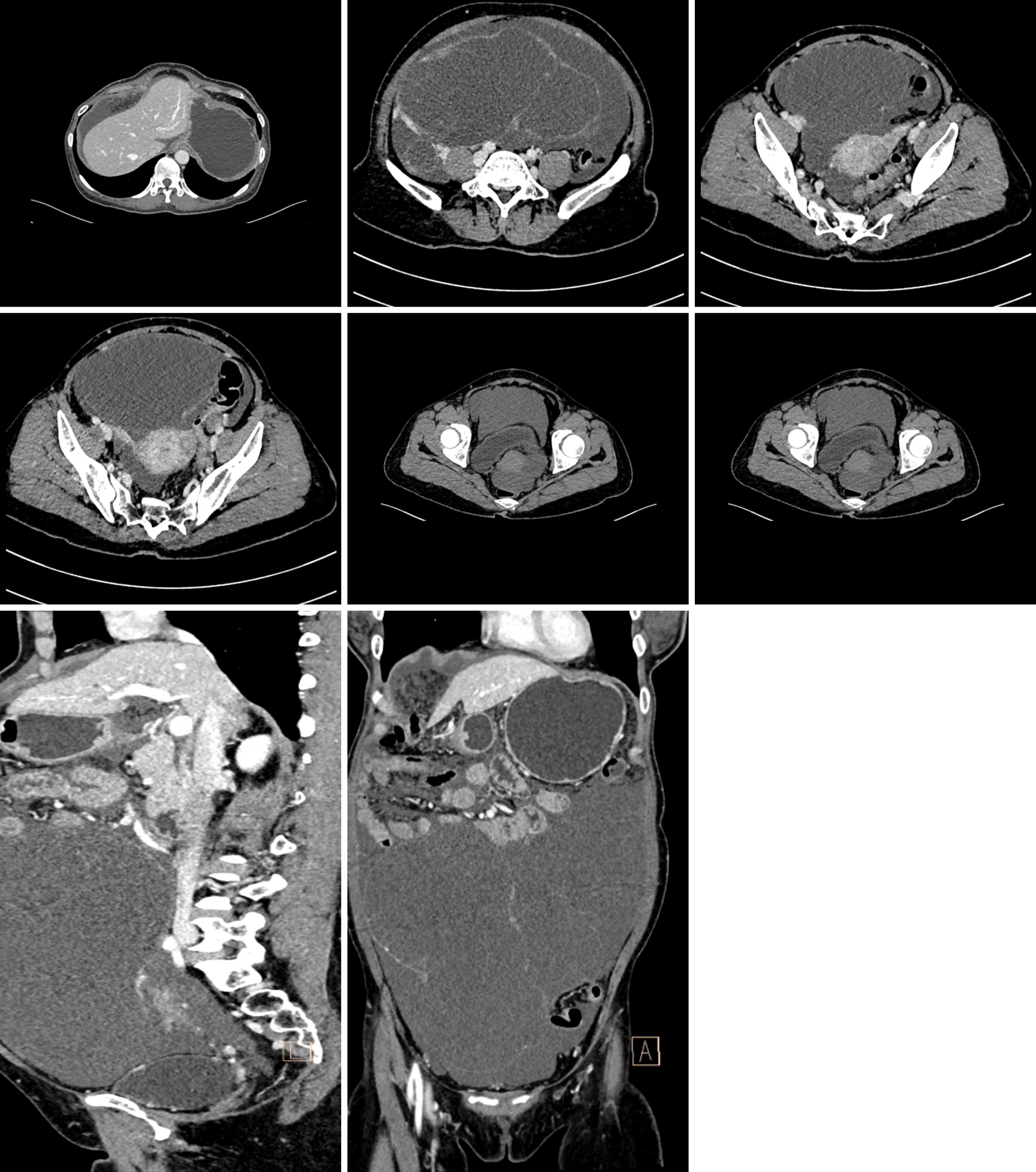 Figure 2 Computed tomography scan of abdomen with contrast shows the lesion before treatment.