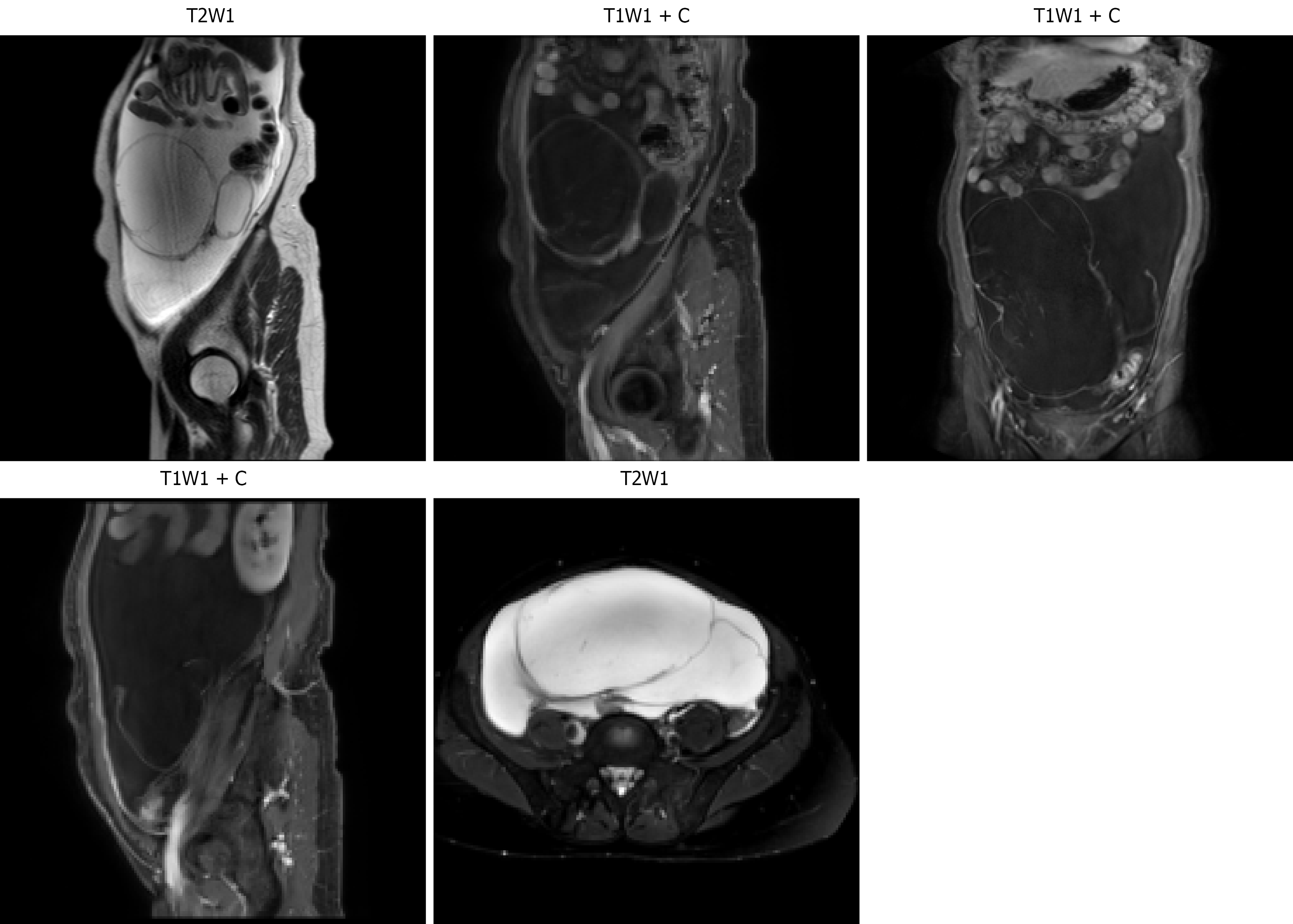 T2W1: T2 weighted imaging; T1W1: T1 weighted imaging; T1W1 + C: T1 weighted imaging with contrast.