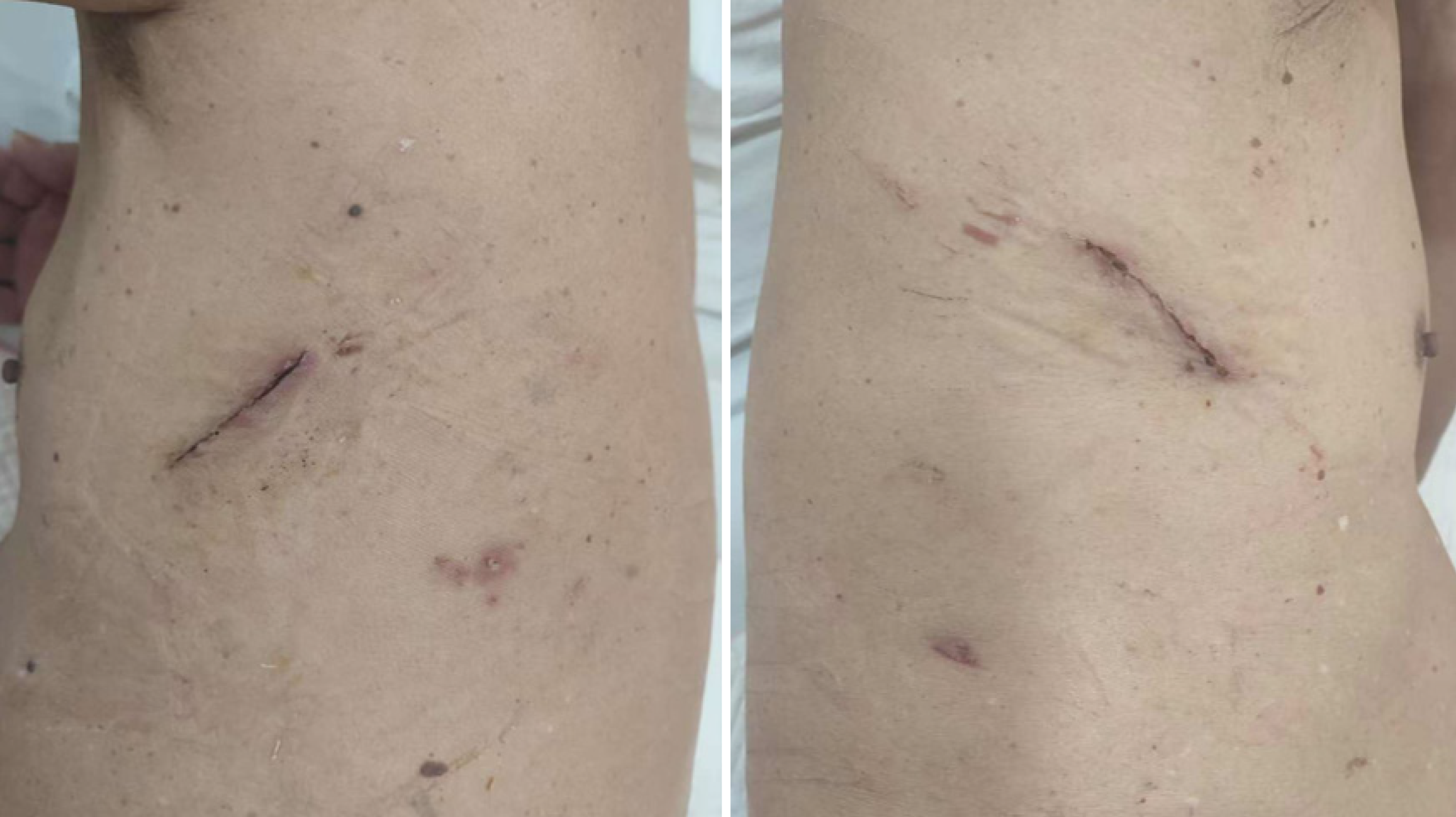 Figure 2 Surgical incisions for the bilateral single-port video-assisted thoracoscopic surgery.