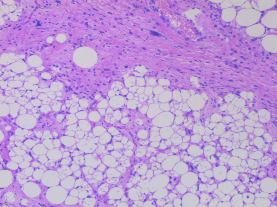 Figure 3 Hematoxylin and eosin staining showing atypical spindle-shaped cells in the tumor (original magnification × 100).