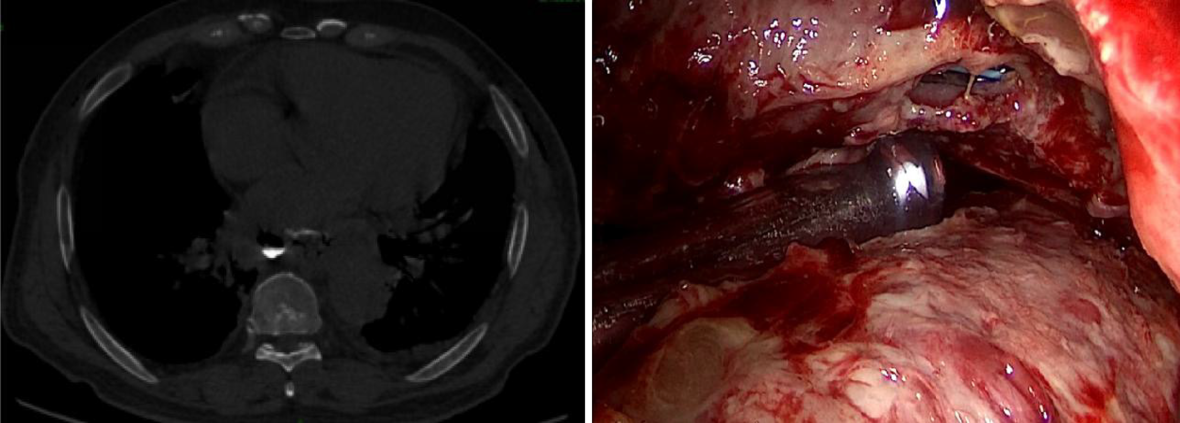 Figure 4 Computed tomography scan showing an esophageal fistula combined with mediastinitis and empyema.