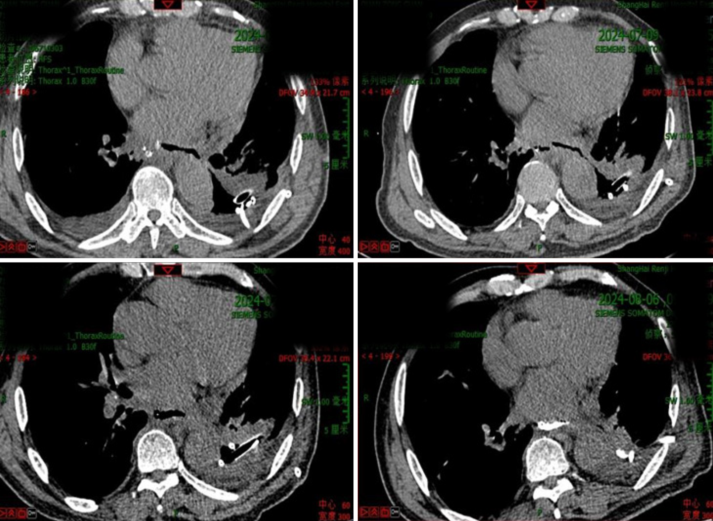 Figure 5 Computed tomography scans showing gradual healing of the fistula after emergency debridement surgery.