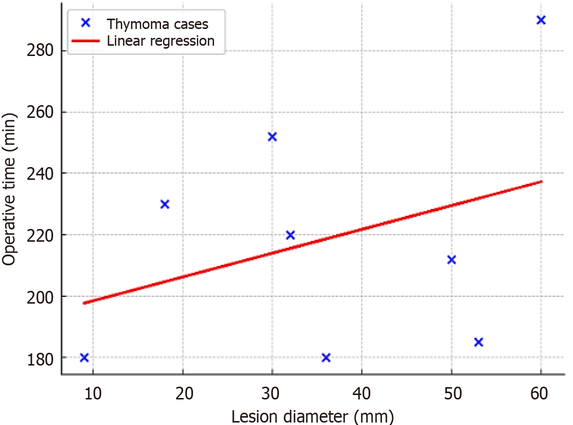 Figure 3 Scatter plot of operative time vs lesion diameter.