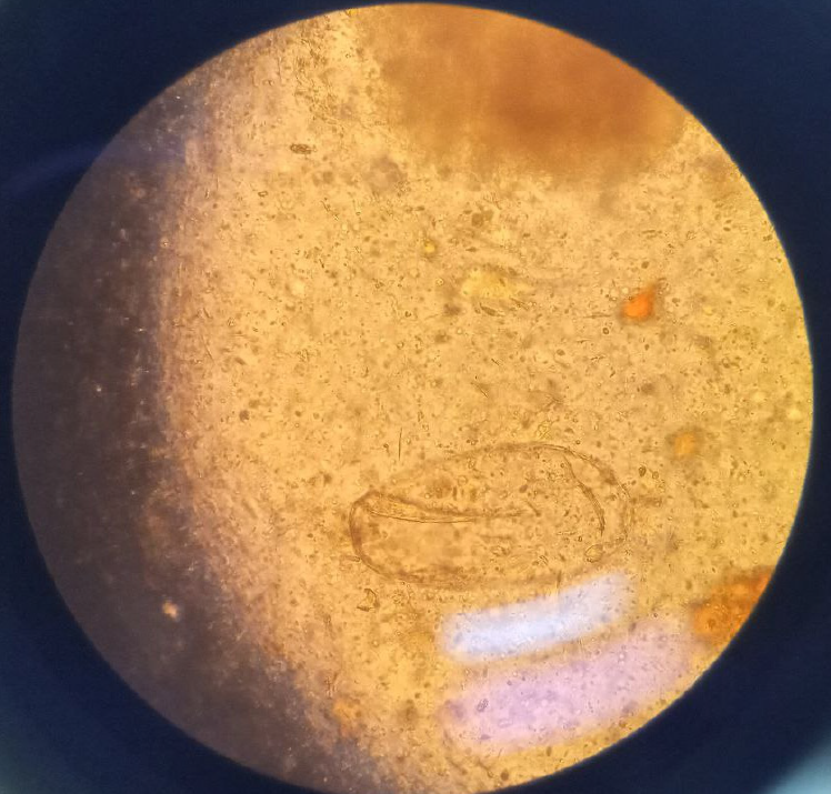 Figure 1 Microscopic visualization of a fasciola egg in a stool specimen.