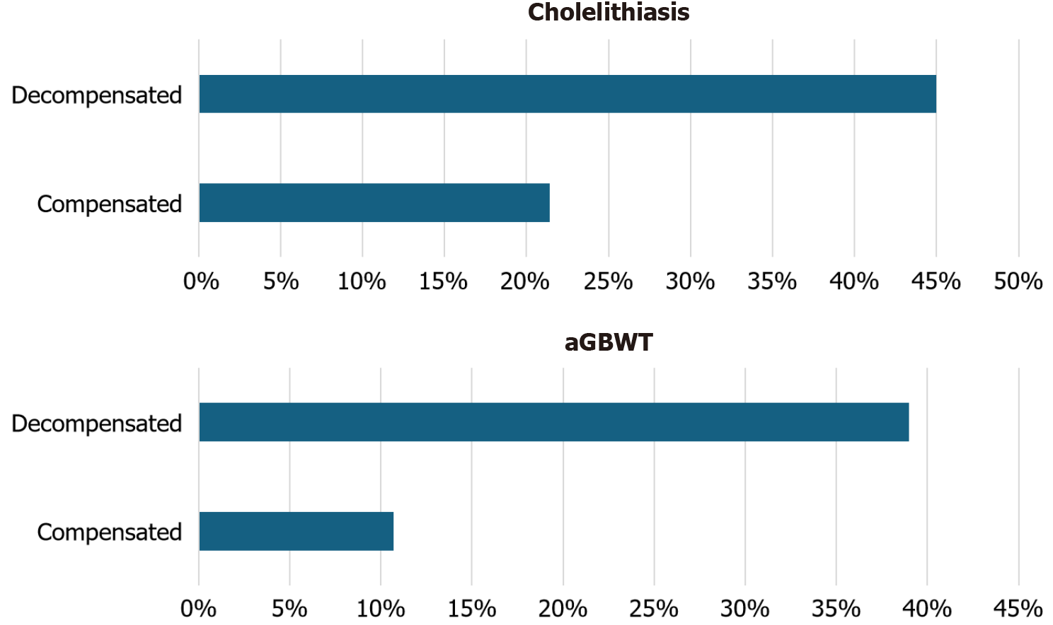 Figure 1 Prevalence of cholelithiasis and asymptomatic gallbladder wall thickening in patients with cirrhosis.