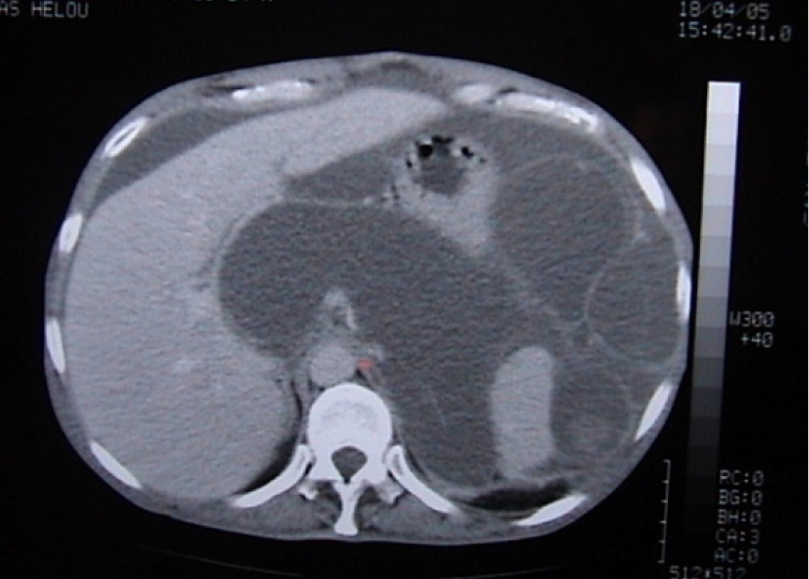 Figure 13 Enhanced computed tomography scan showing a large amount of ascites.
