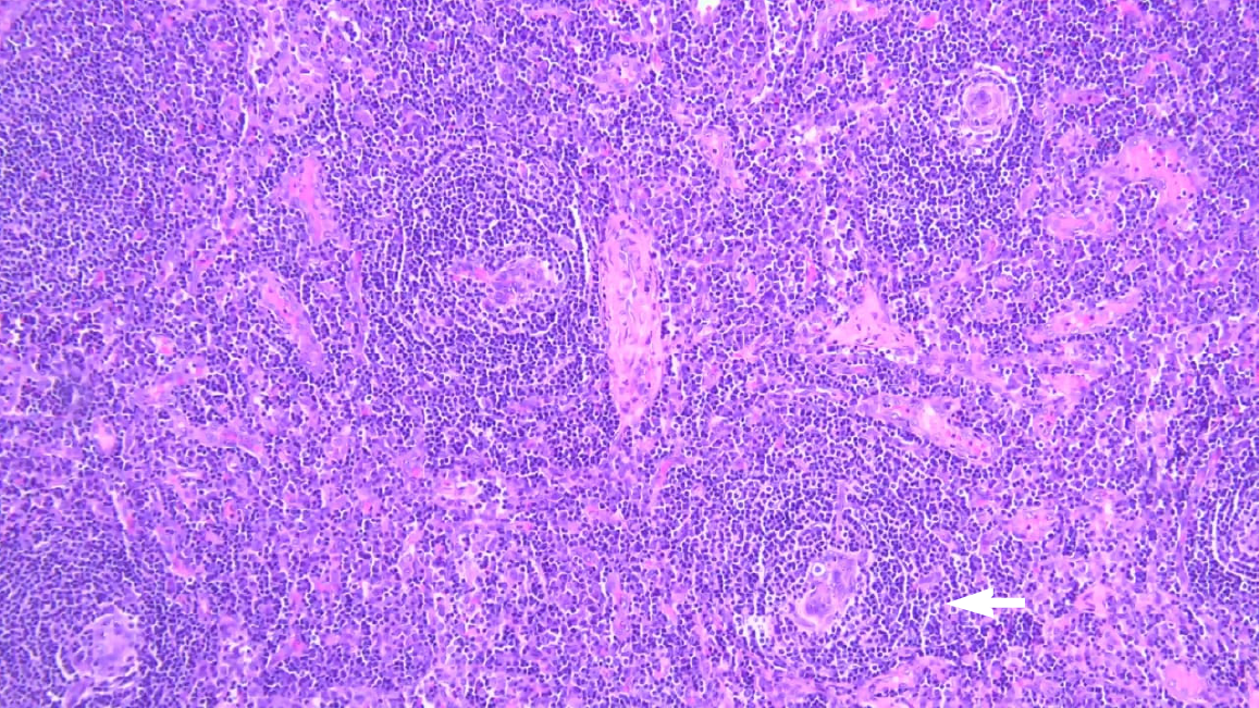 Figure 2 Hematoxylin and eosin-stained lymph node biopsy with atretic germinal centres.