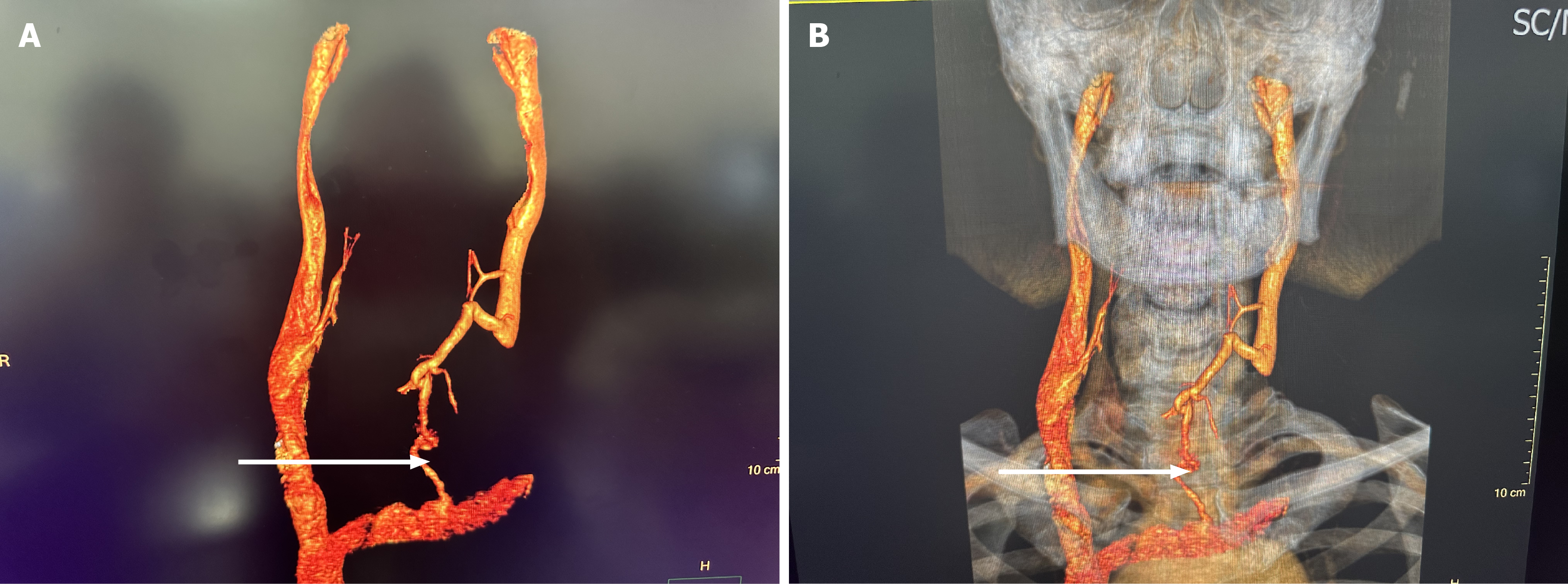 Preoperative imaging modalities, including ultrasound, CT, and CT angiography (CTA)/CT venography (CTV), provided our team with comprehensive vascular invasion assessment, enabling meticulous preoperative planning. This evaluation allowed anticipation of potential vascular reconstruction requirements, even accounting for scenarios where vascular repair might prove technically unachievable. Concurrently, preoperative assessment indicated the common carotid artery was relatively intact, with full preservation anticipated; otherwise, artificial arterial anastomosis would be necessary. Corresponding contingency plans and preoperative consultations were established accordingly. Dikici et al[8] thinks that invasion of IJV (internal jugular vein) with hypervascular tumor thrombosis is an extremely rare condition in PTC. Thrombosis of IJV is probably underdiagnosed. Early-stage diagnosis is important for long-term survival rates.