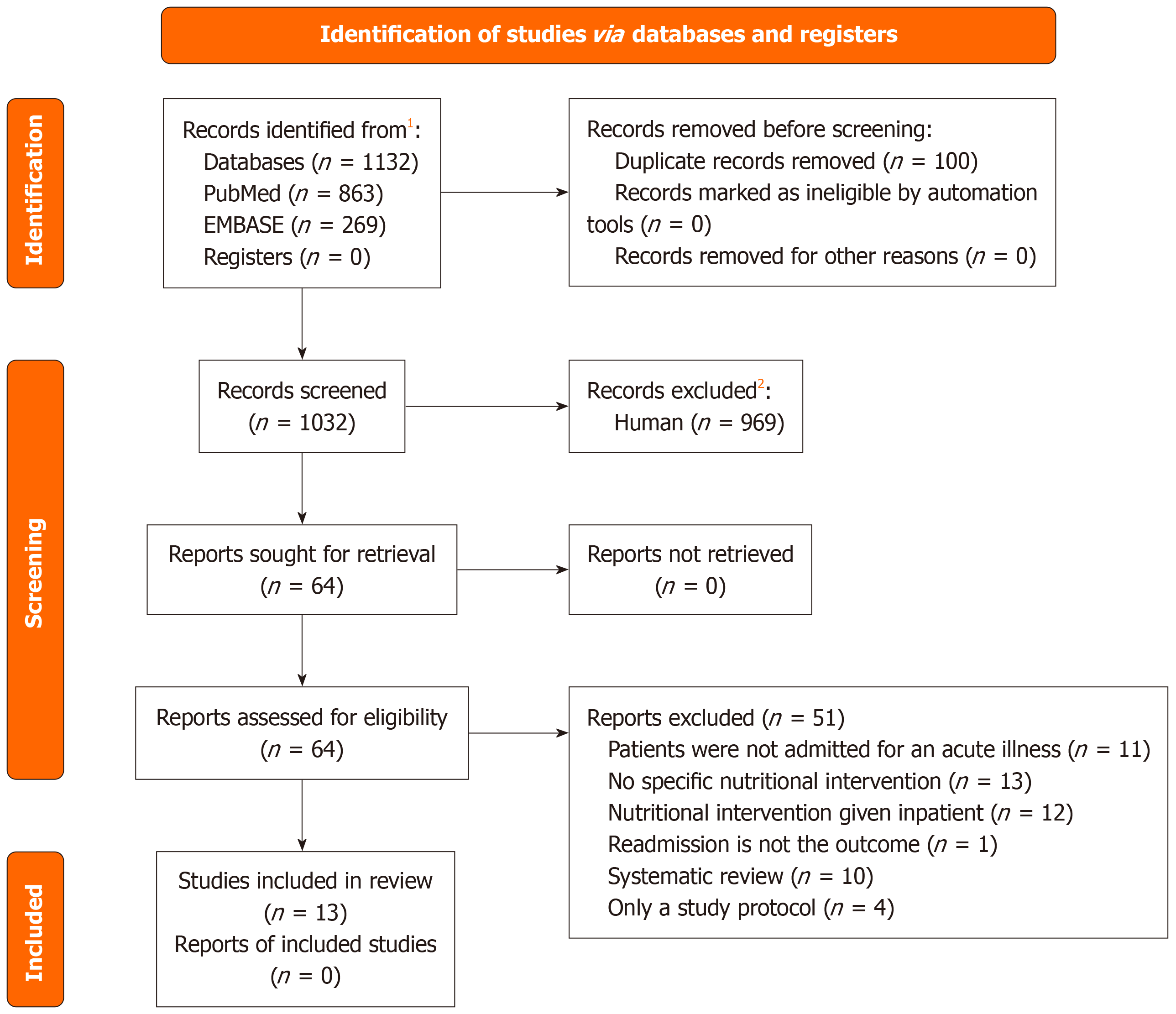 - Citation: Lim D, Chwa A, See KC. Impact of post-discharge nutritional interventions on hospital readmissions: A systematic review. World J Meta-Anal 2026; 14(1): 114237