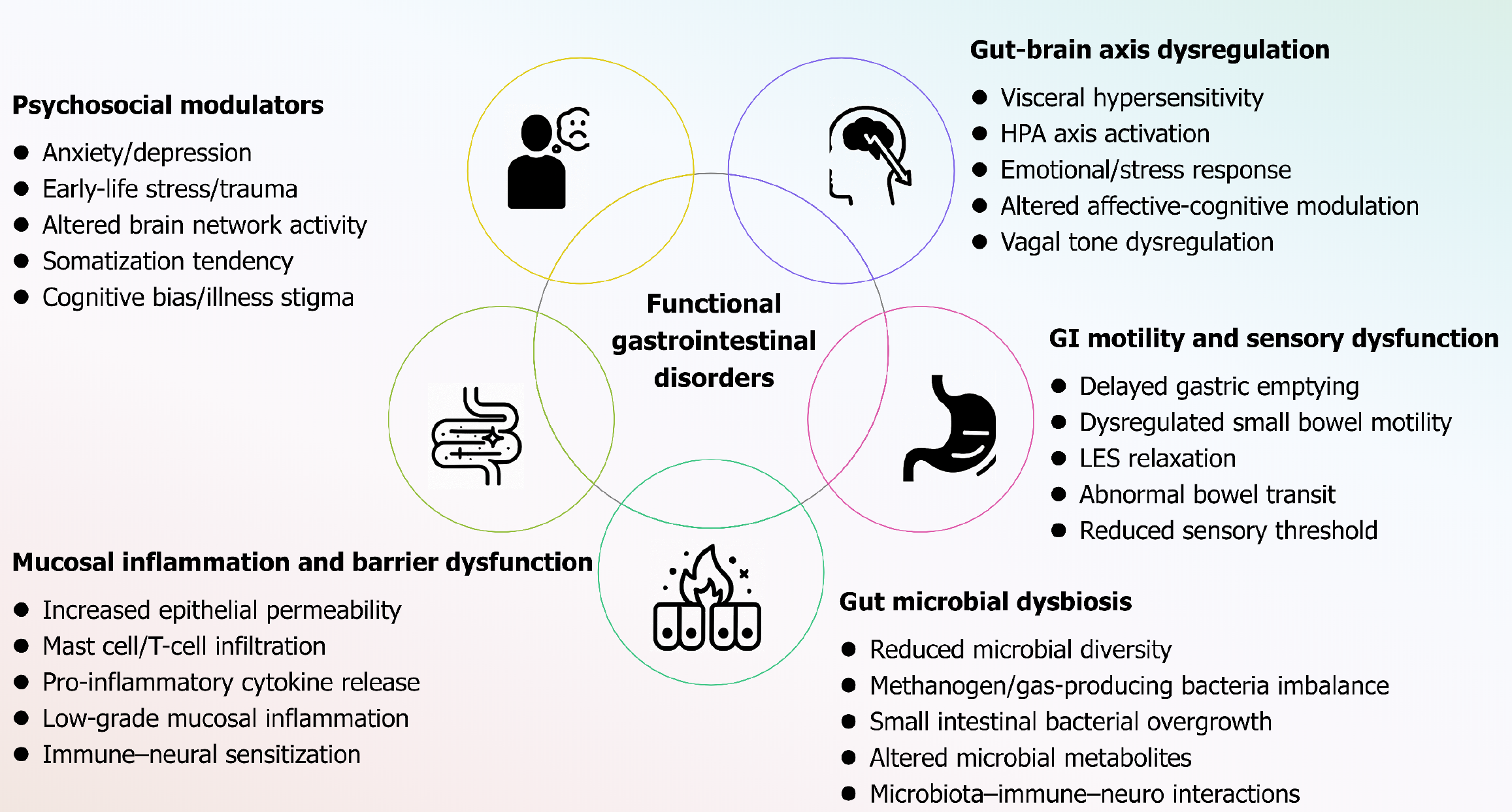 HPA: Hypothalamic–pituitary–adrenal; LES: Lower esophageal sphincter; GI: Gastrointestinal.