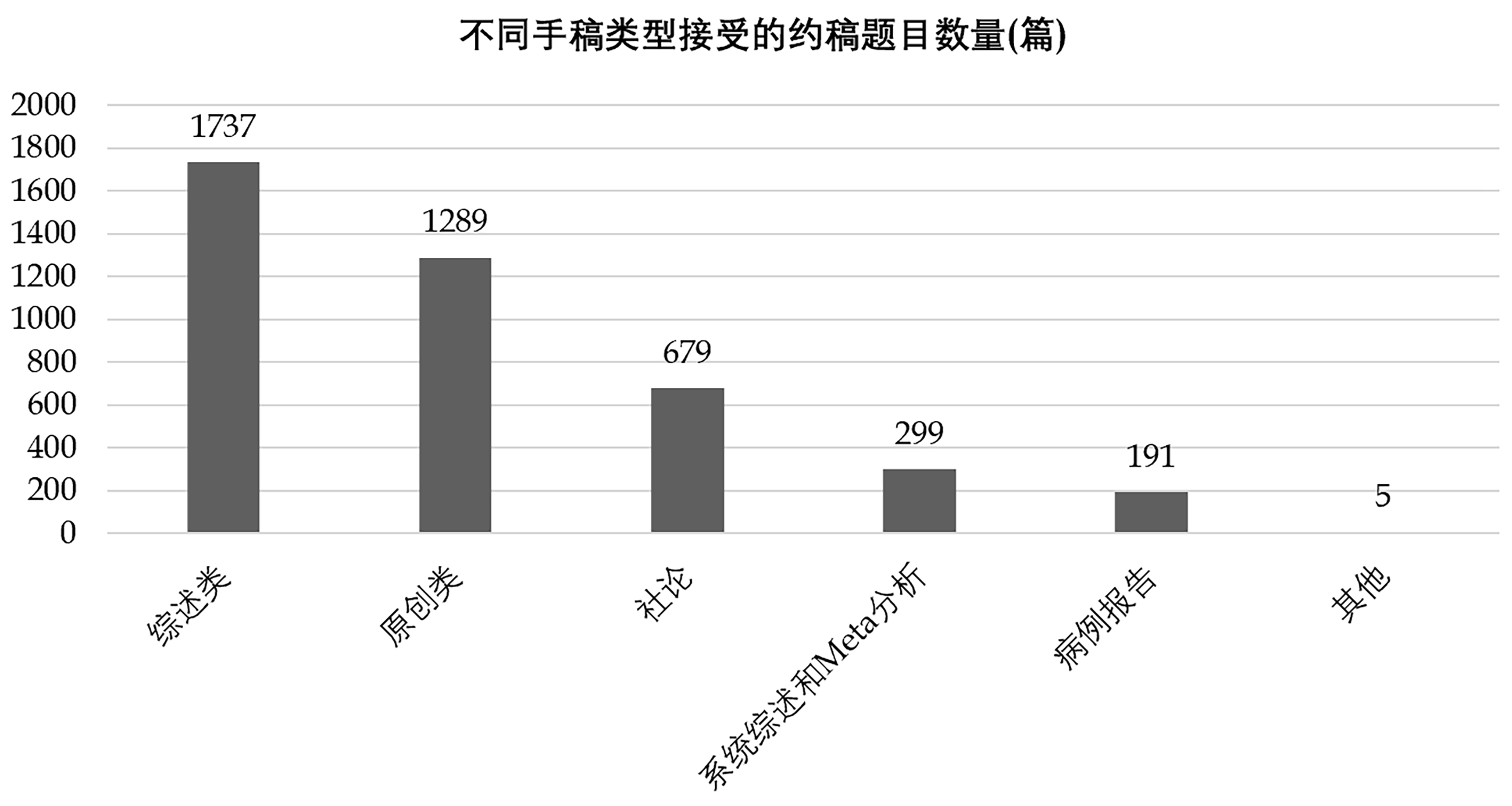 图1 2025年不同手稿类型接受的约稿题目数量。