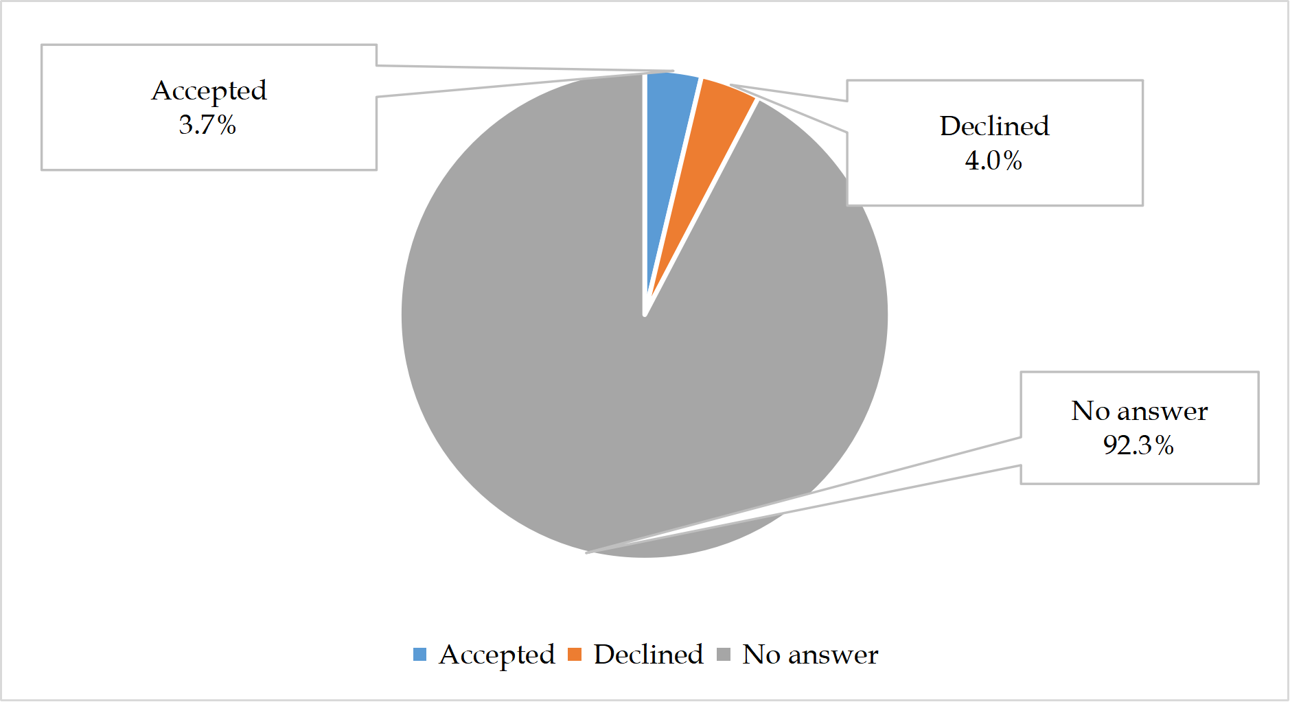 Between January 1 and December 26, 2025, a total of 775690 peer-review invitations were sent for manuscripts submitted to the 46 English-language journals. The responses were as follows: 28873 (3.7%) invitations were accepted; 30641 (4.0%) were declined; and 716176 (92.3%) received no response (Figure 3).